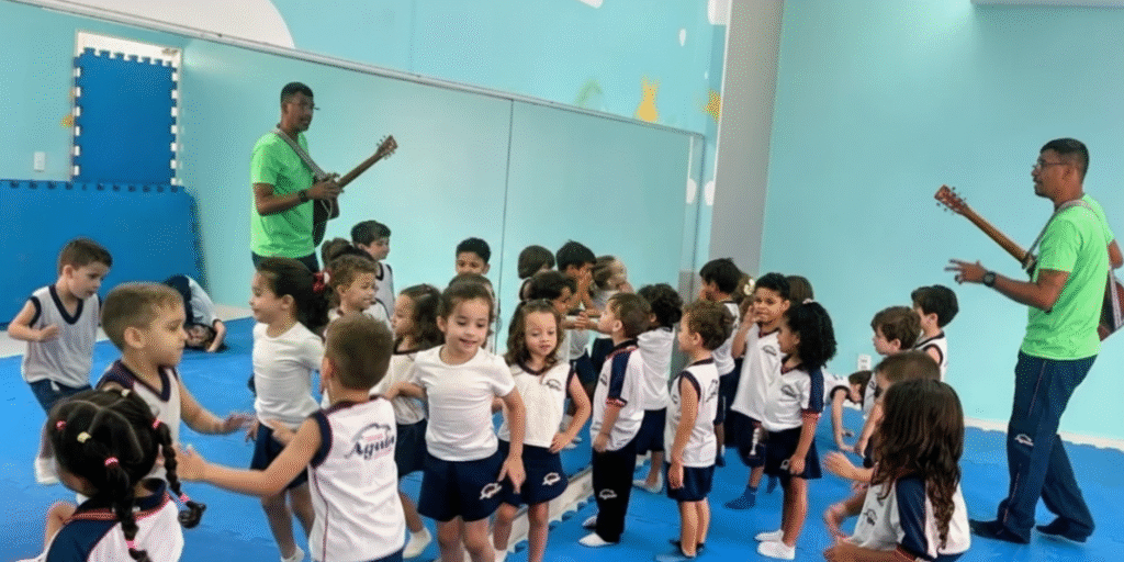 A musicalização já faz parte da rotina da Educação Infantil do Colégio Águia em 2026, proporcionando momentos de aprendizado que unem movimento, ritmo e expressão de forma leve e divertida. As aulas são planejadas de acordo com cada fase da infância, permitindo que as crianças explorem sons, instrumentos e atividades que estimulam a criatividade e a sensibilidade.